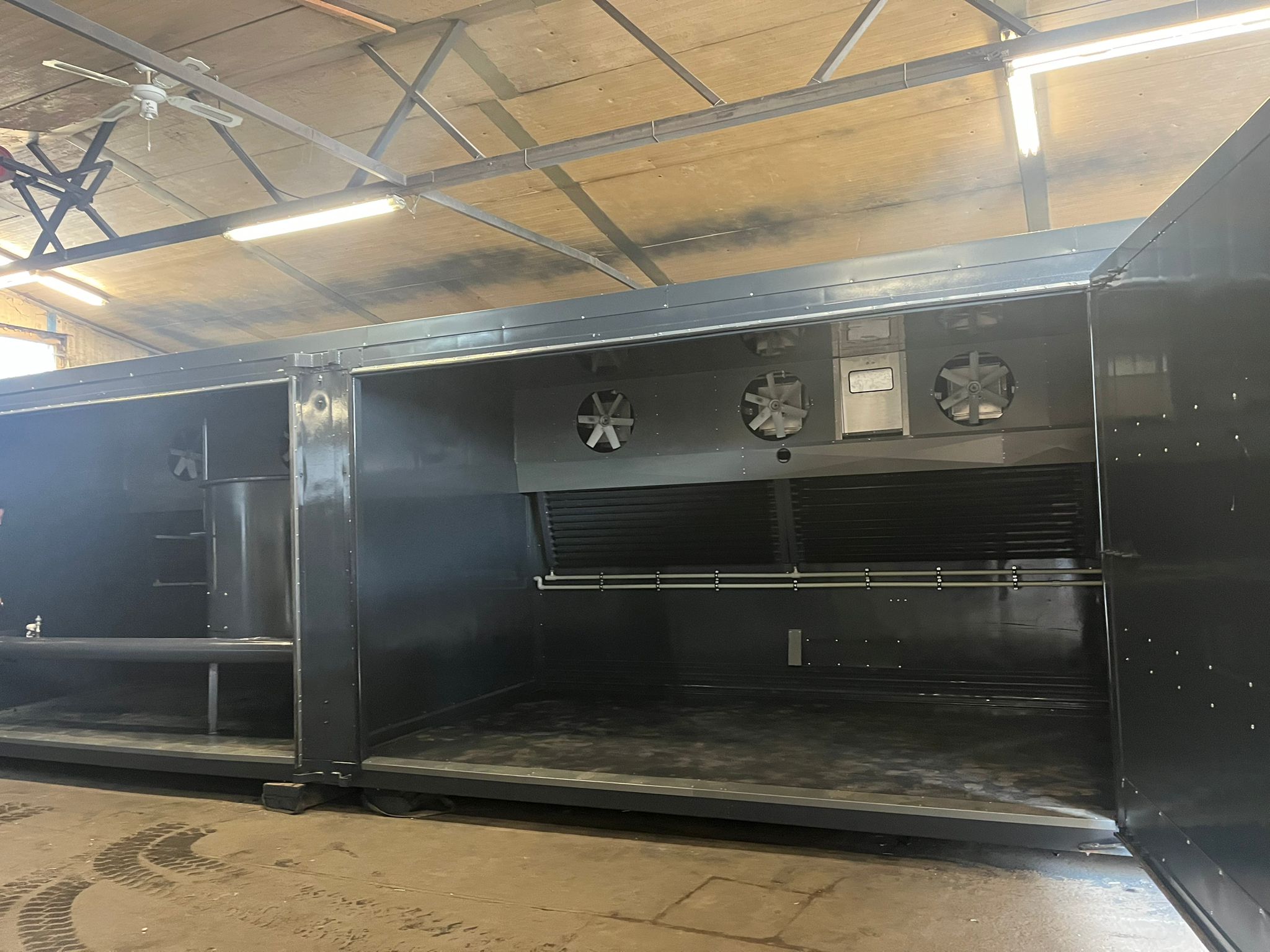 A high-quality and robust container wood drying kiln that combines precision, efficiency, and reliability. Ideal for commercial timber processing, it maximizes output while maintaining optimal wood quality. Additionally can be protected with a single-slope roof for enhanced durability and weather resistance.